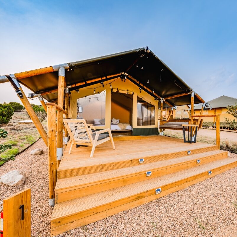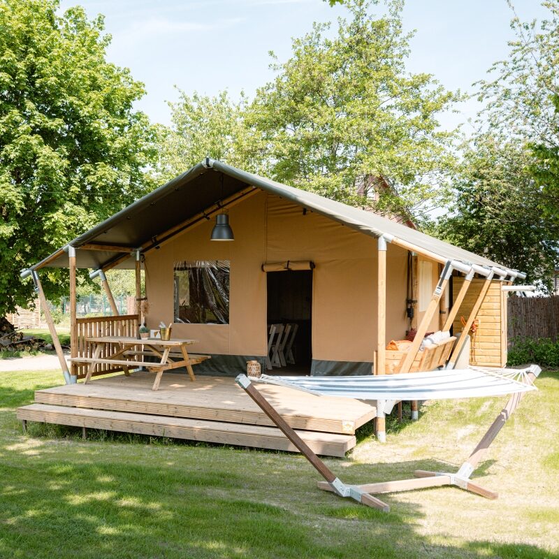 Cette année, nous avons installé des tentes lodge pour 4 et 6 personnes sur deux parcelles de notre camping pour faire du glamping. Elles sont équipées de nombreuses commodités et constituent une expérience de camping exceptionnelle pour les familles, l'aire de jeux...