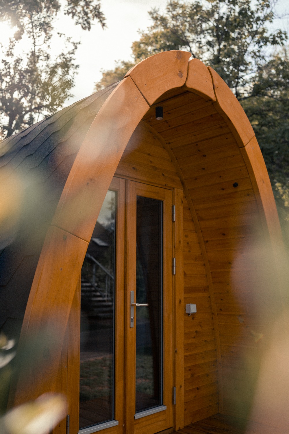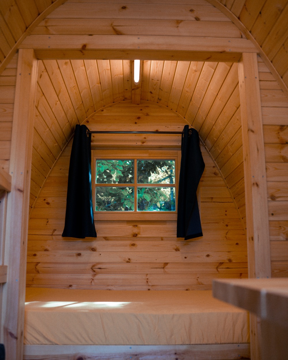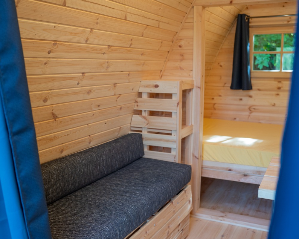 Un logement confortable construit en bois et bien isolé, un petit réfrigérateur avec un compartiment congélateur.Vous pouvez confortablement séjourner, dans votre propre sac à coucher à 2-3 personnes.