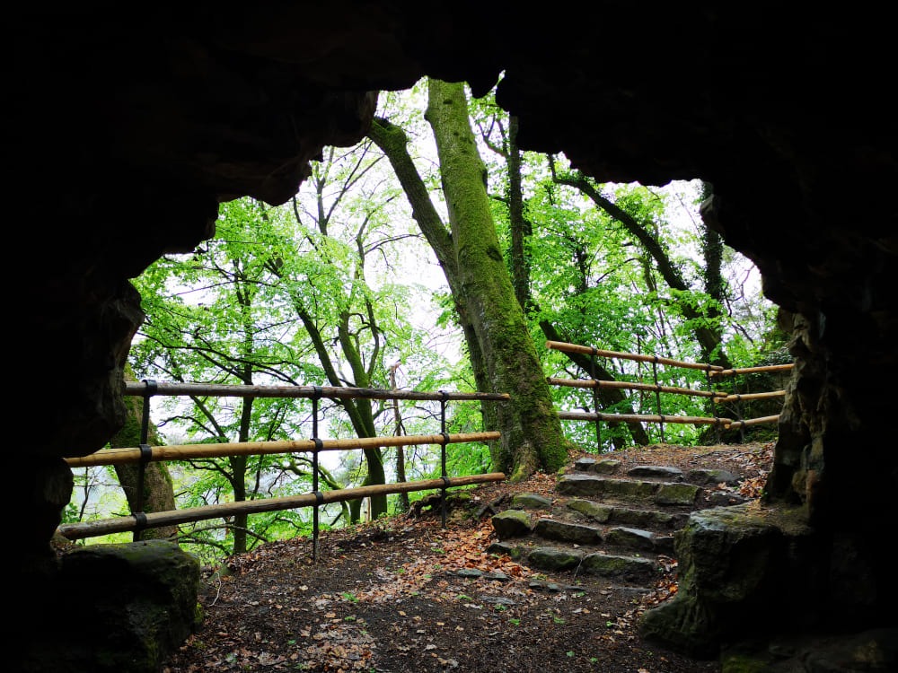 Les grottes au nord de la forêt de Schoenfels sont une destination populaire pour les excursions et les aventures. Ce labyrinthe souterrain composé de galeries, de tunnels et de crevasses était une carrière de pierres. La longueur totale des galeries souterraines accessibles à pied est de 1000 mètres. Faute de sources historiques, tout un chacun a pu développer ses propres théories sur leur but.